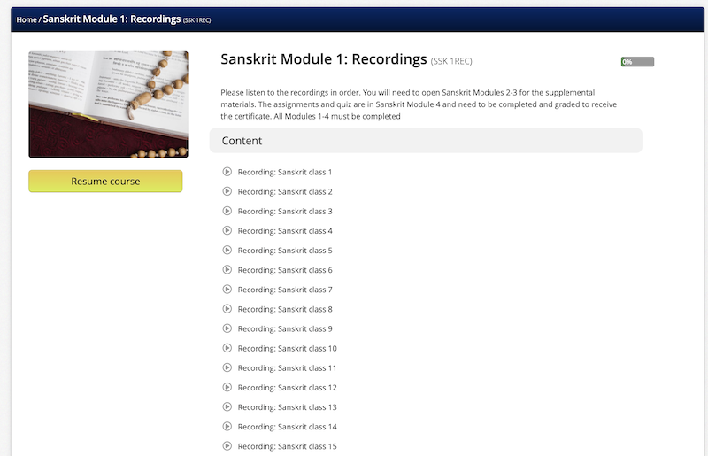 Included in your course are audio recordings to help you listen and practice Sanskrit at home.